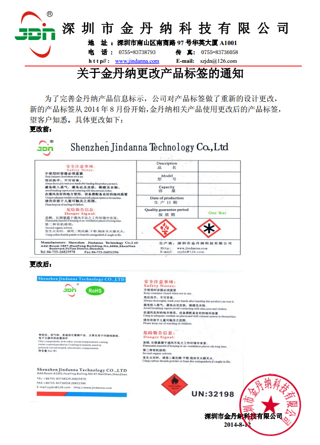 金丹納產(chǎn)品更改標(biāo)簽的通知